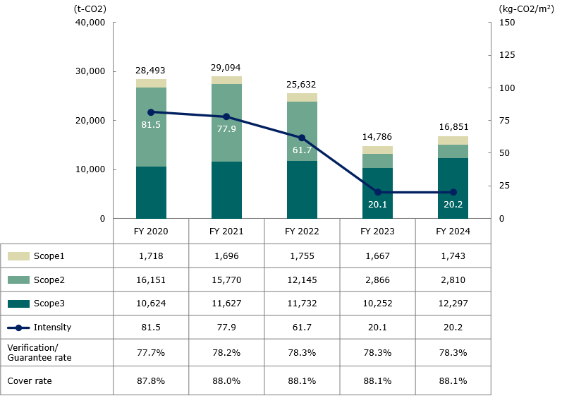 - For Scope 3, the calculation target was expanded in accordance with the above manual starting in FY 2020.
