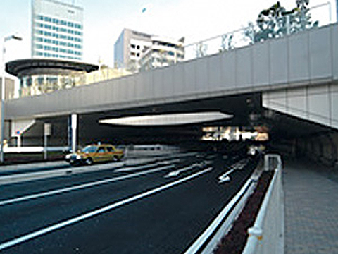 道路工事と両側の建築工事を一体的に計画し同時に施工したことにより初めて実現出来たと言える、都市再開発事業ならではの手法です。