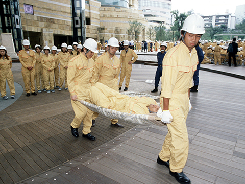 ヒルズ内の震災井戸・防災用品・建物構造などが確認でき、応急手当などの体験訓練を行います。