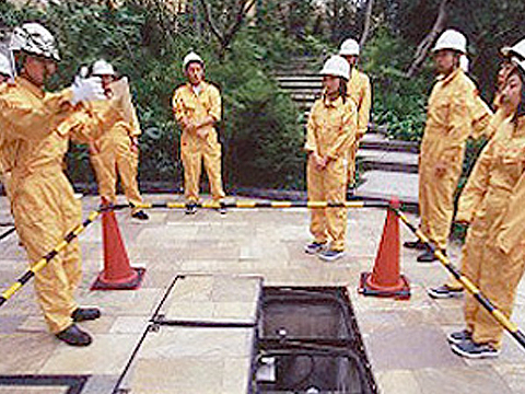 震災発生時に上水道の供給が停止してから復旧するまでの間、生活機能を最低限維持できるように毛利庭園近傍に1ヵ所、六本木さくら坂に面して1ヵ所に非常災害用井戸を掘削しています。
